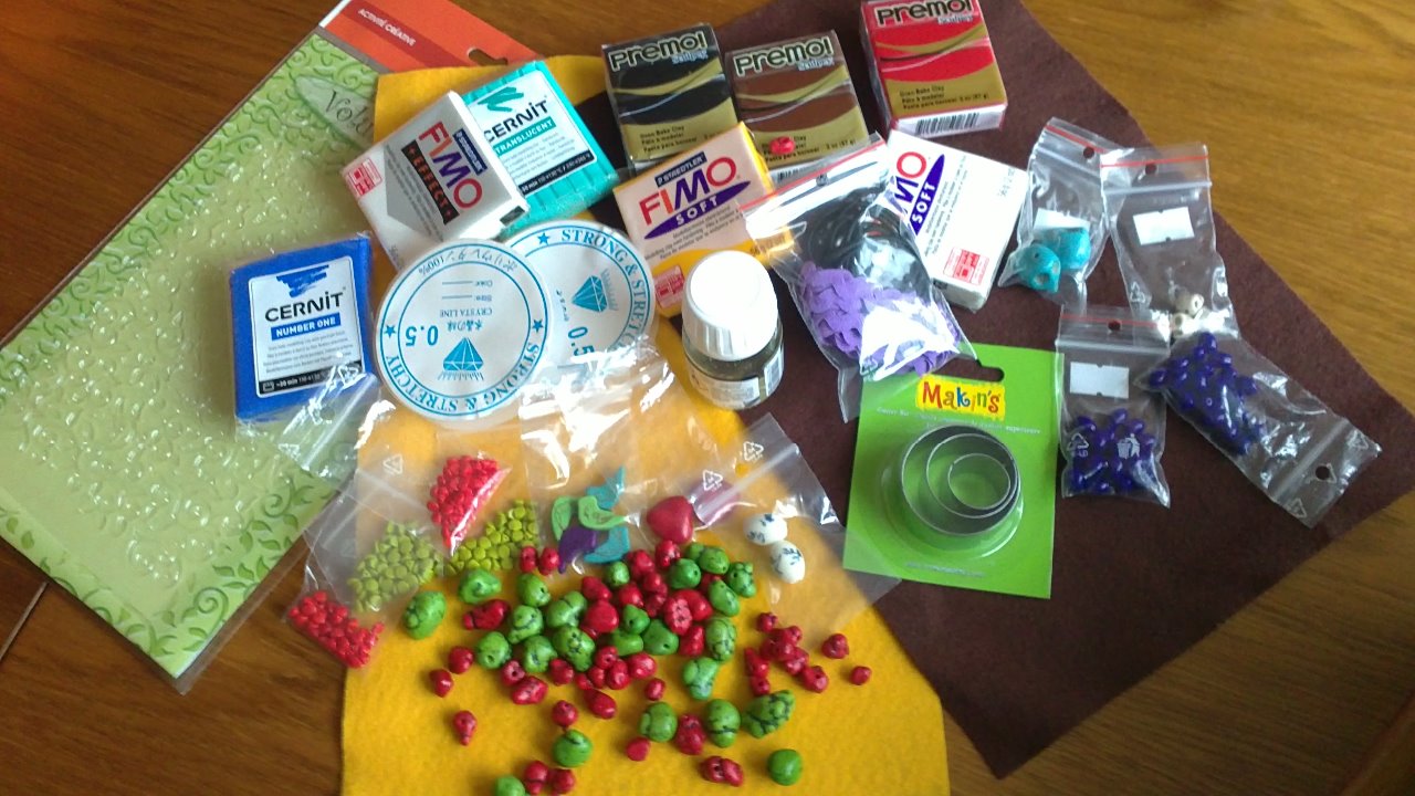 Dneska a včera přišly dva balíky s FIMO hmotou,texturou,leskem na fimo ,elastoměrem,korálky všech možných velikostí a barev,měděné,starostříbrné a zlaté komponenty,howlitové korálky a filc